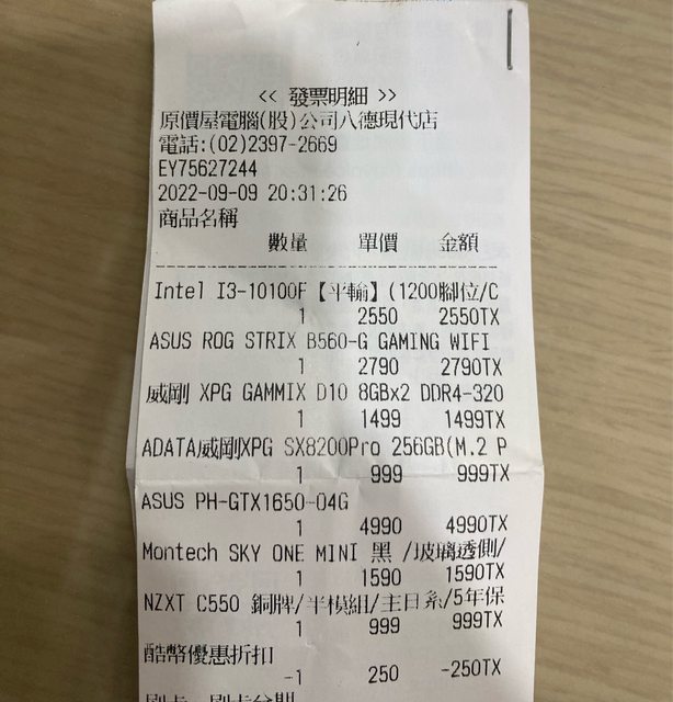 其餘都在保內,會附原始發票