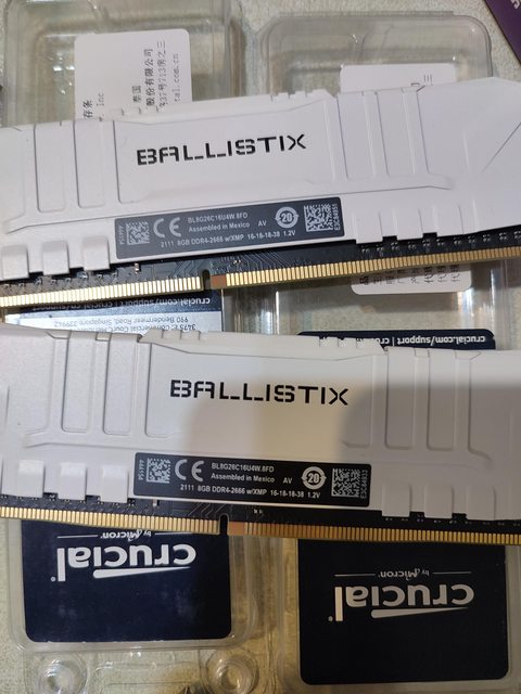 美光 BALLISTIX DDR4-2666 8G*2 白色