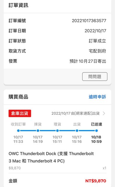 A:2022/10/17 PChome購入 保內