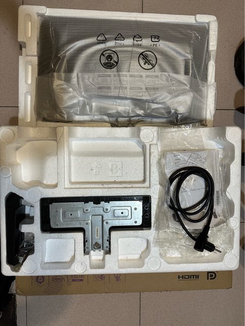 原廠盒裝在,電源線和原廠螢幕架都附上。
