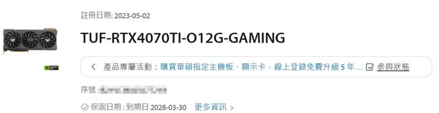 ◎硬體型號: ASUS TUF 4070Ti O12G