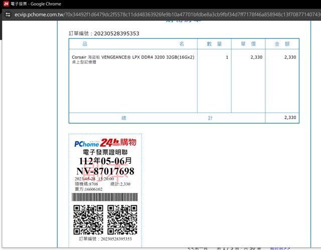 其餘接如同發票無改變