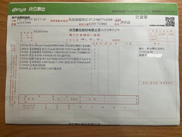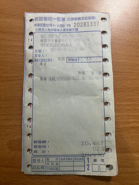 1.107 年 2 月購入,過保,正常使用退下,無挖礦惡操,無盒有發票