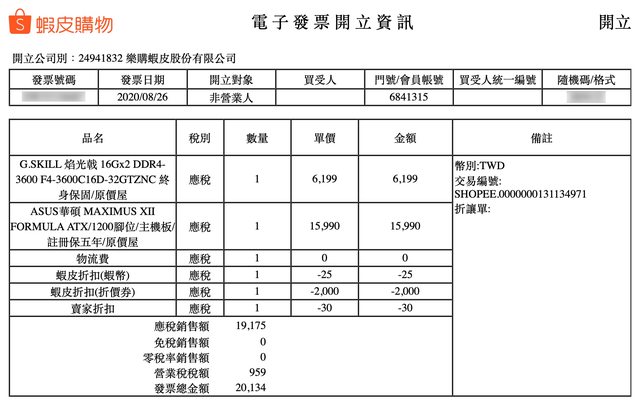 1. 其中一組購於2020/08/26 另一組購於2020/08/29 都來自原價屋蝦皮商城