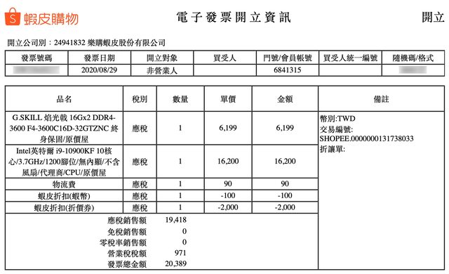 1. 於2020/08/29購於原價屋蝦皮商城