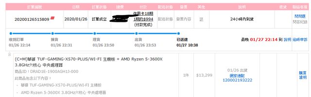 ◎硬體型號: AMD 3600X