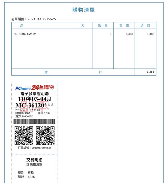 1.2021/04於pchome購入,已過保。
