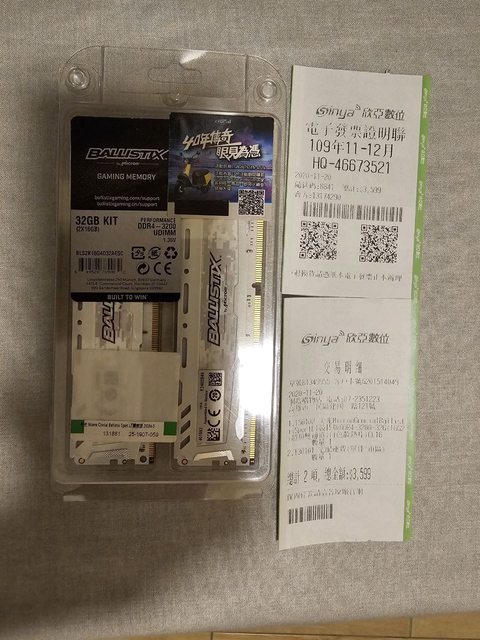 2.Micron Ballistix Sport LT 白 DDR4-3200 16G*2