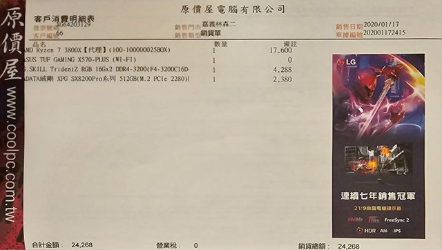 2.2020欣亞購入正常使用換下,附原始發票