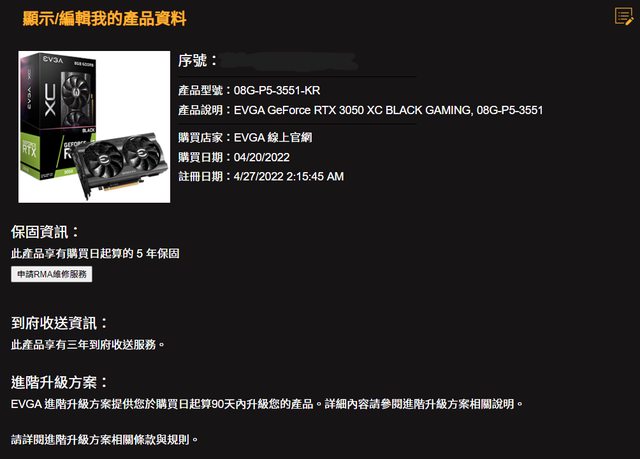 標題[賣/台北/皆可] EVGA RTX 3050 XC BLACK 8G