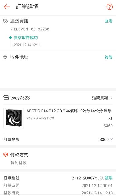 ◎硬體型號: 1.ARCTIC P12 PWM PST CO *1 2.FANNER 慧爾德 前鋒 F120 *3 3.SUNON 建準 MFC0251V1-Q01U-S99 *1 4.ID-COOLING NO-12025-XT 風扇*3 5.SCYTHE 鐮刀 大手裏剣 參 疾風版 SCBSK-3100 散熱器*1 ◎欲售價格: 1.250 2.一組400 3.175 4.一組300 5.1000 全收2000 ◎品樣狀況: 1.2021年12月14日蝦皮二手購入,有盒,樂維公司貨保固至2031/10/12 使用一年後換下 ,有攻牙 2.2022年3月14日及3月21日掏寶購入,有盒裝,無保固 使用半年後換下,無攻牙 3.2022年2月16日蝦皮小白購入, 無盒,無保固,可附上購買證明及螺絲, 使用約1年,無攻牙 4.2021年11月18日及2022年1月26日購入,有一個盒裝已破損丟棄,其餘完整盒 裝,無保固 使用一年後換下 ,無攻牙 5.2022年4月23日蝦皮原價屋購入,盒單齊全,保固至2025年4月23日 使用一年後換下,有兩處小掉漆,使用奇異筆遮蓋 ◎佐證資料: 1.