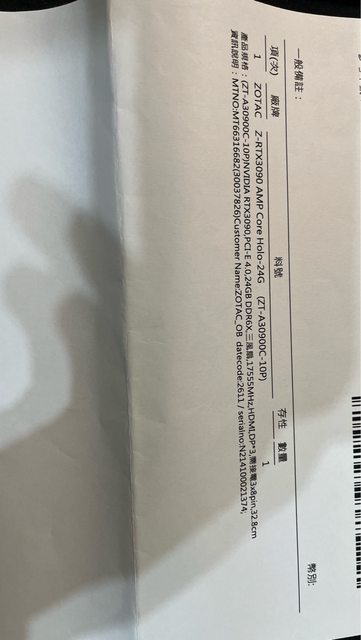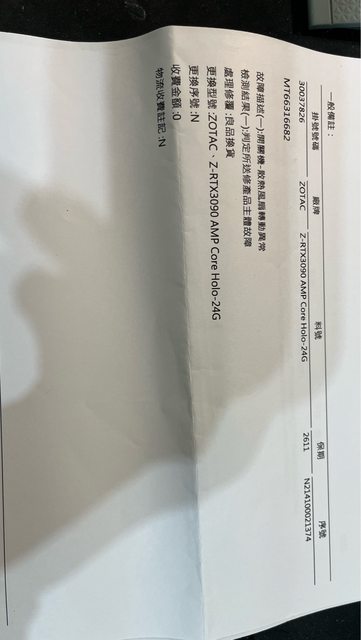 更換整新品 會附上整新單據