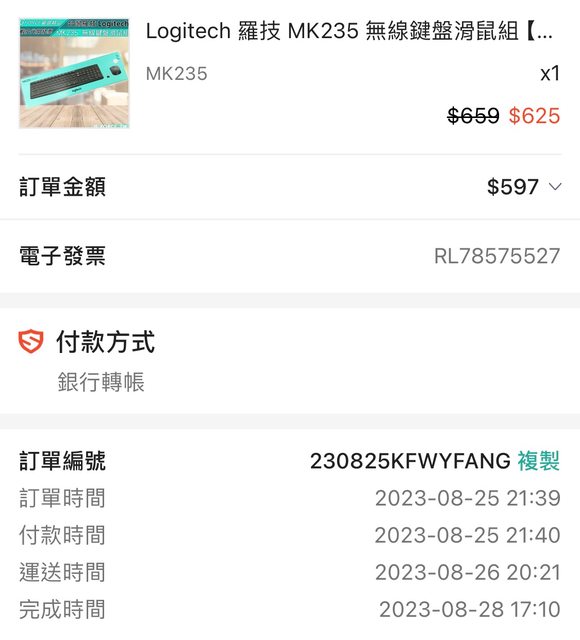 3. 羅技 MK235 無線鍵鼠組合(已售出)