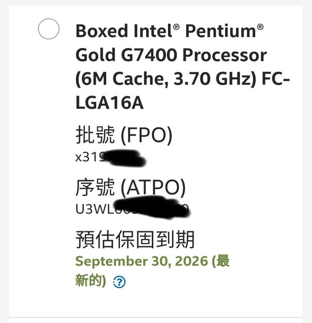 3.無購買證明,盒裝是13400的,intel官網查詢保固至2026.09.30。