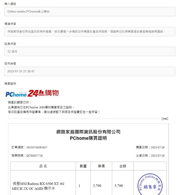 保固到 2027 / 7 / 26
