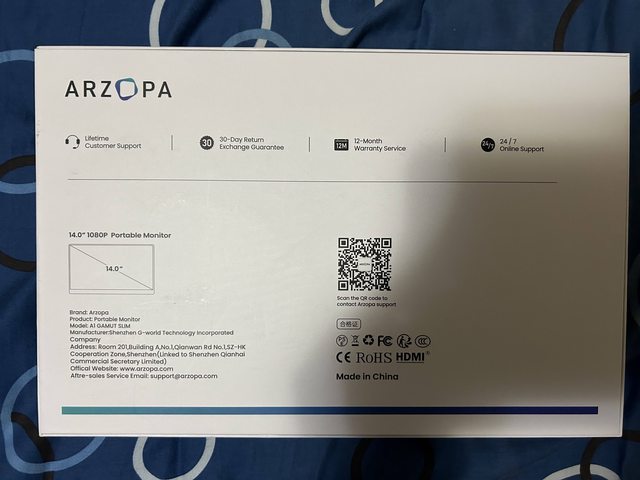 ◎硬體型號:Arzopa A1 14寸 1080P FHD 60Hz 可攜式螢幕