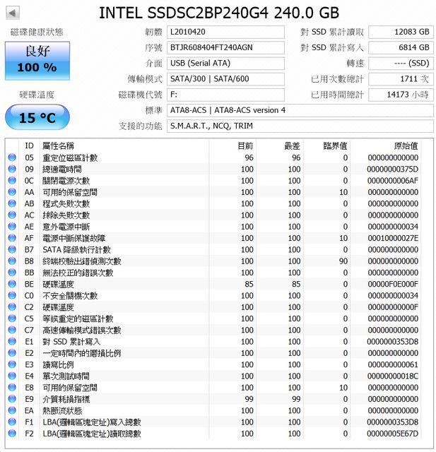 2.Intel SSD 730 240GB SSD 已過保固