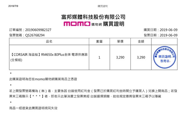 4.2019.06.09購自MOMO,原廠10年保 保內