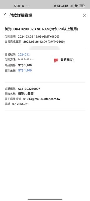1 購買日期 20240326