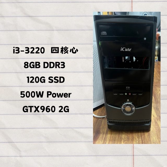 1. i3-3220 / 8GB (4g+4g) DDR3 / 宇瞻120G SSD / 500W Power / MSI GTX960 2G