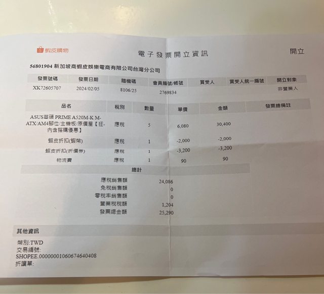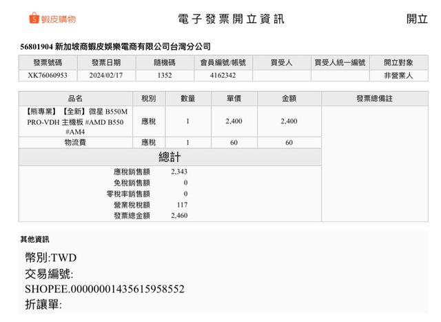 1. CPU 今年2/9向其他賣家單獨購買CPU,貨品來源為原價屋搭售組合,該賣家之原價屋