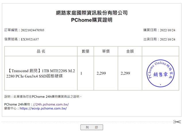 創建SSD為2022/10/24 Pchome購入