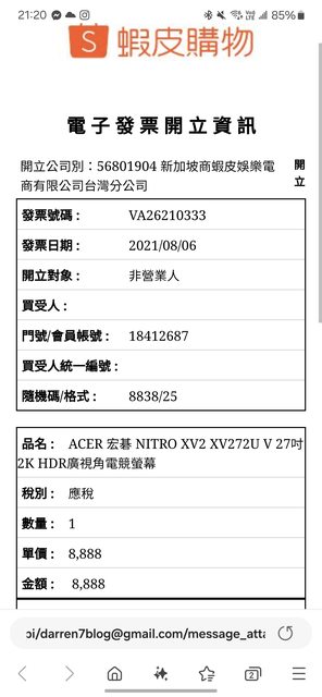 標題[賣//] Acer XV272U V 2K 螢幕