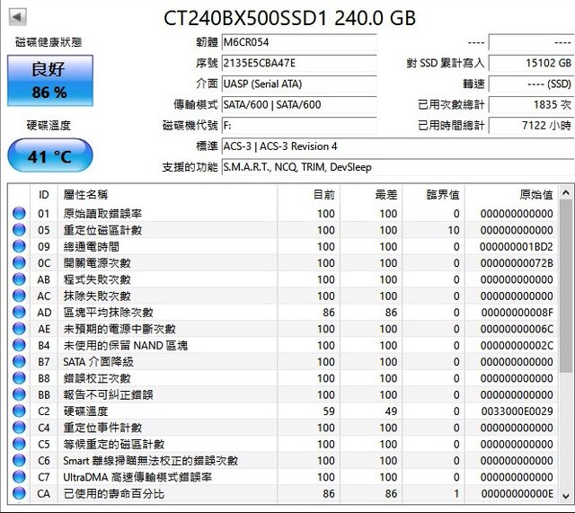◎硬體型號:美光Micron Crucial BX500 240GB SATAⅢ 固態硬碟