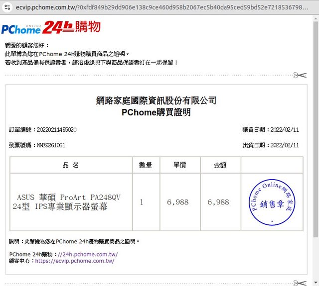 1. 購買日期:2021年2月 PCHome 購入