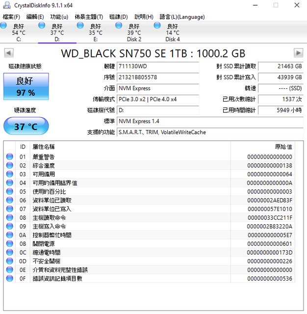 3. 2021.11.20購入,用於ps5,就不裝上電腦看健康度了。