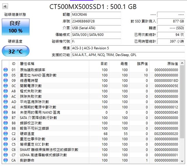 標題[賣/台北/皆可] MX500 500G SATA SSD