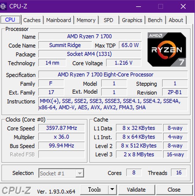 ◎硬體型號: Ryzen7 1700 附原廠風扇