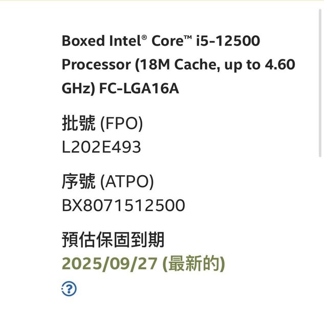 標題[賣/桃園/皆可]Intel I5 12500