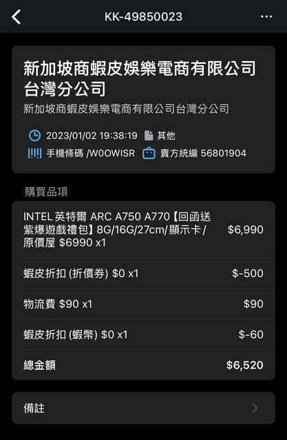 標題[賣/全國/皆可] Intel ARC 750 二手 保固內