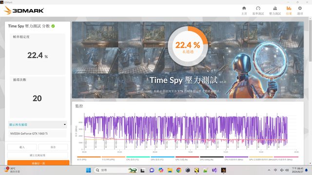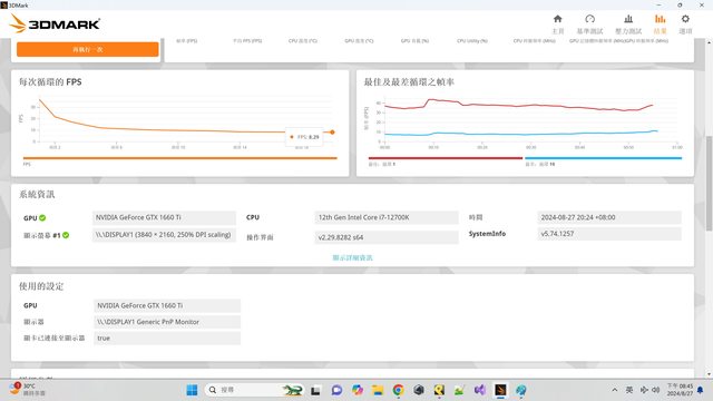 基本上可以跑完測試 但是後面因為卡到溫度牆 所以FPS掉落很多