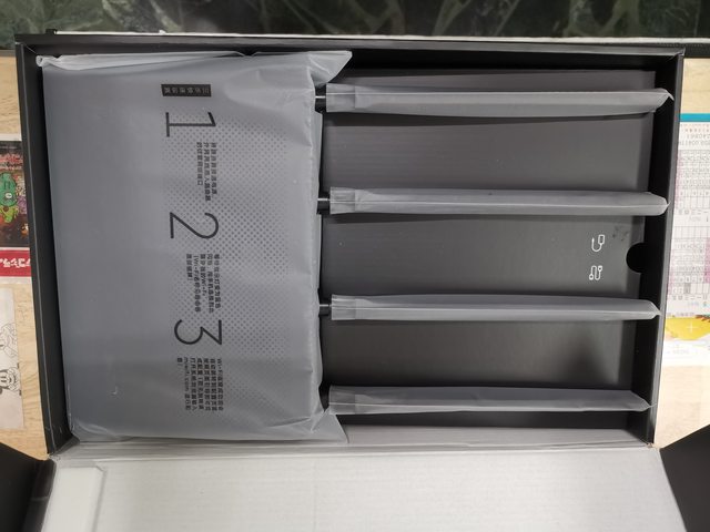 內含路由器本體、變壓器與原廠所附的網路線