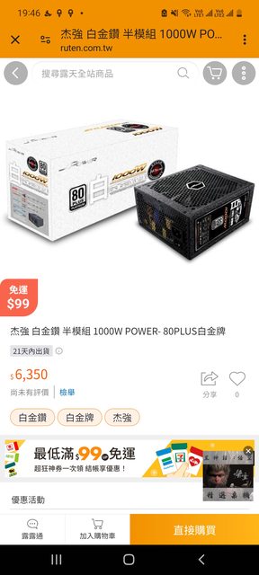 標題[賣/新北/面交] 杰強 白金鑽半模組1000W 80PLUS