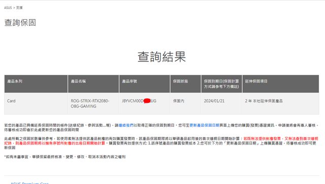 保固查詢結果