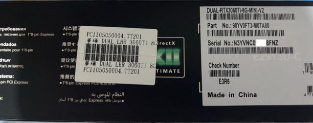 ◎硬體型號: ASUS GeForce RTX 3060Ti DUAL MINI 8G