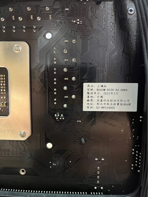 主機板: 技嘉B660M DS3H AX DDR4