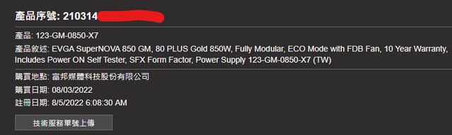 2.2022年8月3日購入,保固至2032年8月3日、已註冊,原廠線材都在