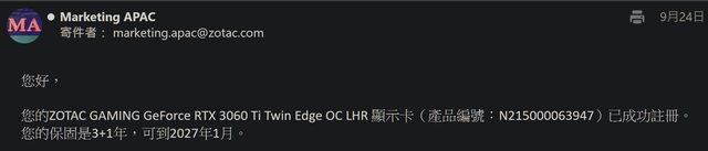 2、ZOTAC 3060Ti,保固至2027/1,預定中