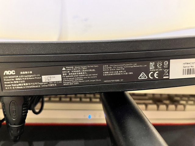 ◎硬體型號:aoc C27B1H 曲面螢幕