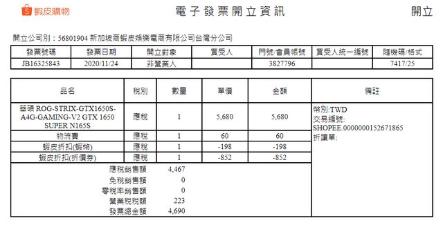 ◎品樣狀況:2020/11/24 於蝦皮德源電腦購入、已註冊原廠五年保固
