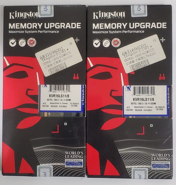 1.金士頓 桌機 DDR3L-1600 8G*2 全新未拆