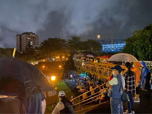 公園小山丘跟橋上站滿人現在那區都封起來了