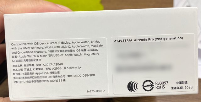 1.產品型號:airpods pro 2 type c