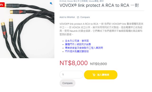 Vovox link protect A RCA訊號線 1米