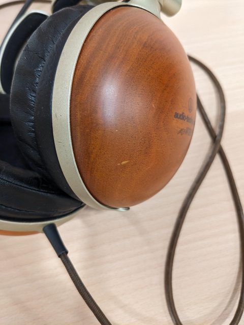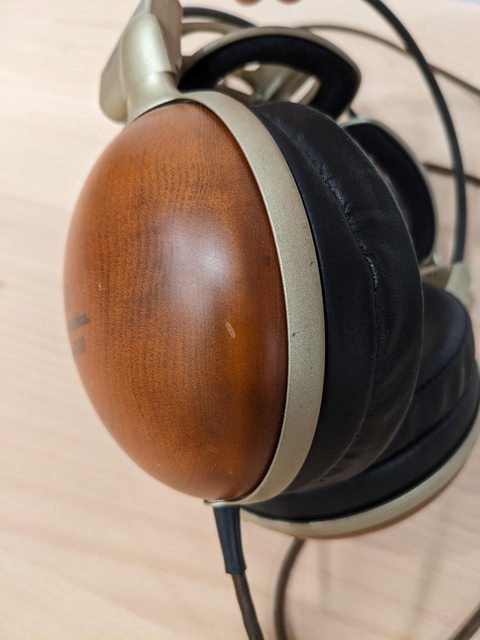 聲音正常,兩側木殼有輕微刮痕,耳罩真皮無風化但有輕微塌陷