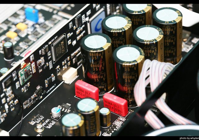 電容用料,大電容使用Nichicon Gold Tune 6800uF 35V,類比四顆數位兩顆
